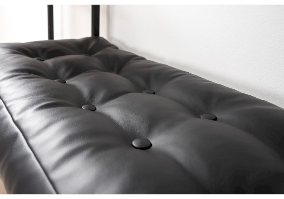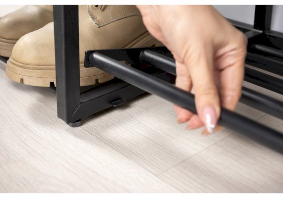 Сиденье с мягким элементом из кожзама, съёмная металлическая полка для обуви.