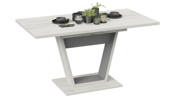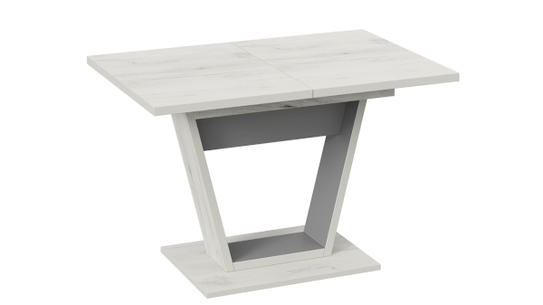 В оформлении новинки применяются актуальные варианты декора, что подчёркивает универсальность стола. Модные текстуры «Дуб крафт золотой», «Дуб крафт белый» в сочетании с цветами чёрный и серый графит, придадут ощущение тепла и уюта в кухонном интерьере.