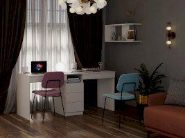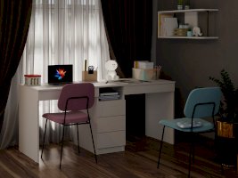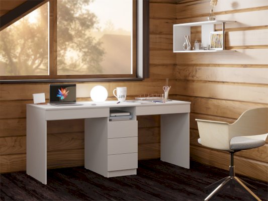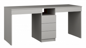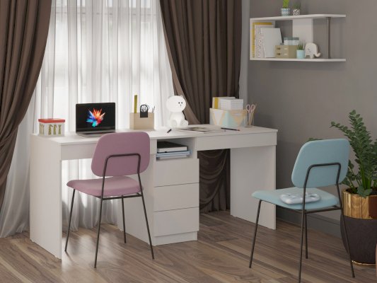 Письменный стол обладает лаконичным дизайном и поэтому впишется в любой интерьер. Поставьте его в детскую, офис, рабочий и учебный кабинет. Классическая прямоугольная столешница позволяет разместить на ней все необходимые вещи, в том числе ноутбук, монитор, клавиатуру и настольную лампу. Имеется 3 вместительных ящика посередине на шариковых направляющих, а также под каждым рабочим местом. Стол рассчитан на двух детей.