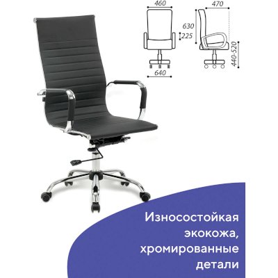 Обивка выполнена из экокожи высокого качества - современного материала на хлопковой основе. Благодаря тканой основе и пористому полиуретану экокожа отлично пропускает воздух, что положительным образом сказывается на комфорте во время эксплуатации. Материал износоустойчив - кресло сохранит привлекательный внешний вид в течение длительного времени.