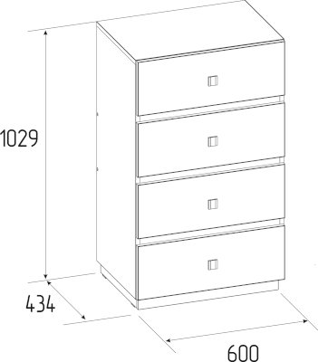 Поддержать порядок в спальне прекрасн поможет комод. На столешнице расставьте рамки с любимыми фотографиями или стильные интерьерные вещицы, вместительные ящики помогут организовать правильное хранение вещей. 4 вместительных ящика глубиной 35 см, высотой 14 см и шириной 53 см для размещения одежды и косметики. Ящики оснащены шариковыми направляющими полного выдвижения, что обеспечит высокую прочность и бесшумность при эксплуатации.