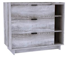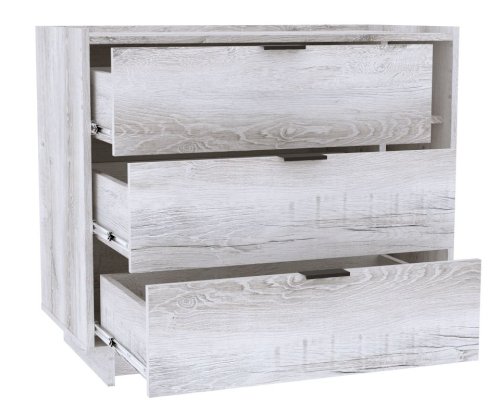 Комод с ящиками ФЛЕКС 6 в светлом цвете Дуб Шавиниган выполнен из ЛДСП класса эмиссии Е1 толщиной 16 мм. Комоды - это удобная и стильная система хранения, предназначенная для небольшого помещения, поэтому комод ФЛЕКС 6 шириной 90 см отлично дополнит любую комнату: гостиную, спальню, прихожую или комнату подростка. Ящики оснащены шариковыми направляющими полного выдвижения, а столешница с бортиками идеально подходит, чтобы поставить принтер или телевизор. Бортики по краям защищают предметы от падения со столешницы.