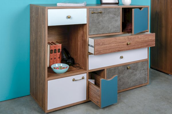 Комод Вайс сочетает в себе нежные, тёплые цвета и строгие геометрические формы. Станет ярким дополнением для любого пространства.