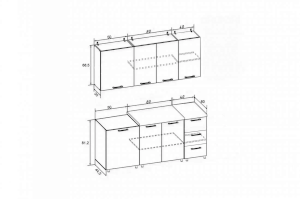 Высота нижних шкафов: 812 мм