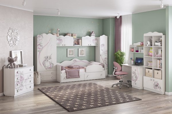Стильный и модный стеллаж детской «Фэнтези» - обрадует каждого ребенка. Стеллаж с открытыми и закрытыми полками идеально подойдет для книг, игрушек и мелочей. Необычный принтерный рисунок на фасадах выдержан в общем стилистическом решении. Рисунок устойчив к истиранию и ультрафиолету.