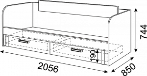 • Кровать имеет 2 выдвижных ящика.